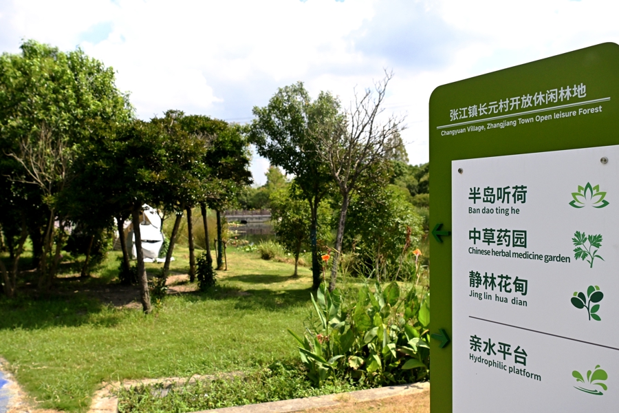 漫步在林间的小道上,花香、青草香扑面而来,张江镇长元村党总支副书记曹燕琼介绍:“长元村生态环境特别好,有水有林、有草有田,我们希望充分利用这个优势发展旅游和经济。尤其是长元村重点打造的长美绿地已成为村民及周边市民休闲、运动、露营、交友的网红打卡地。”