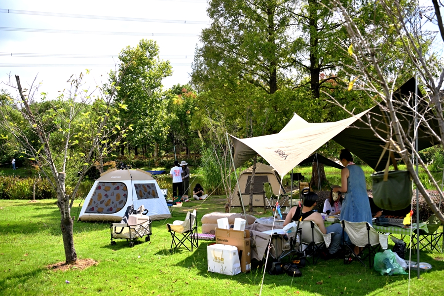 “环境好了,水质好了。我们老年人早上出门锻炼,晚上外出遛弯,愿意出来的老人也越来越多了!”村民曹中华道出了长元村发展生态对他们实实在在的生活改变。除了环境优美、场地开阔的得天优势外,长元村还提供一系列完善的服务,给游客更好的假期体验。修缮原来的“野路”,建设“骑行步道”;在露营基地内新增移动公厕,铺设沿线路灯;组建护林员工作室,对林水开展保护治理。曹燕琼说:“周末好天气的时候,绿地能‘长’出200多顶帐篷,节假日旺季有将近千人在这里放松身心。”